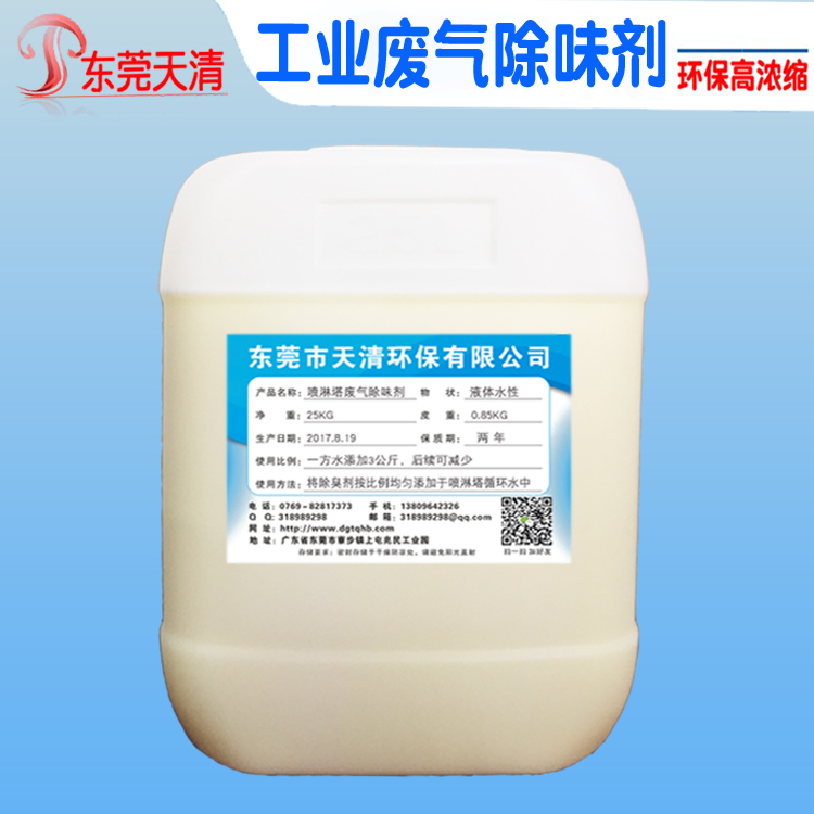 除味剂能与各种有害、异味分子迅速发生聚合、取代、置换、吸附等化学反应,产品中性,无可燃性、无腐蚀性、无二次污染,是有效去除废气、臭气、