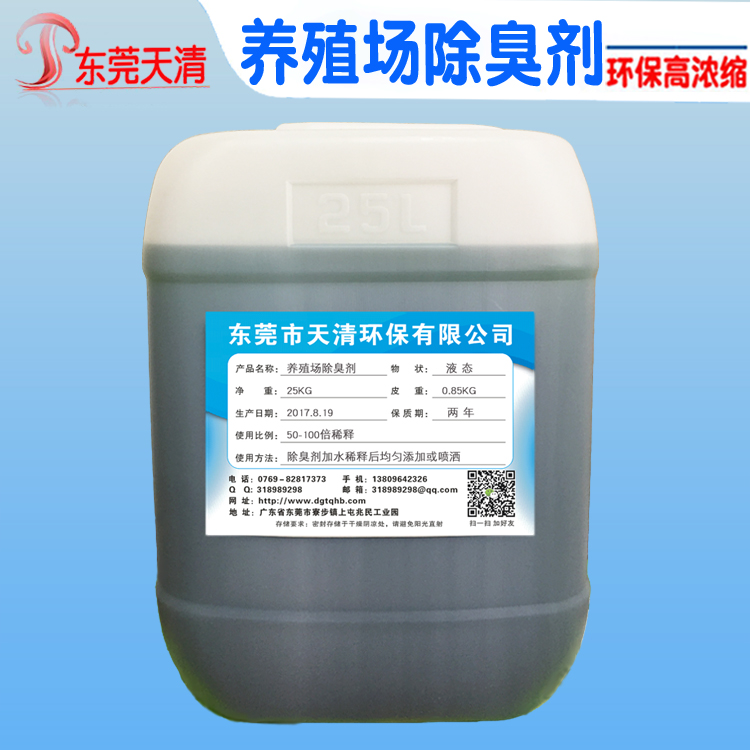 目前东莞市天清环保有限公司根据养殖场恶臭气体研制出了养殖场除臭剂产品,多种植物的根、茎、叶和花果中提取有效成份,在高能射线作用下产生巨大的作用力,提高植物液活性,能与各种有害、异味分子迅速发生聚合、取代、置换、吸附等化学反应,产品中性,无害、无可燃性、无腐蚀性、无二次污染。养殖场除臭剂可以有效地分解恶臭环境中的氨、有机胺、二氧化硫、硫化氢、甲硫醇等恶臭气体分子。作为行业除臭剂有名品牌,养殖场除臭剂正逐渐在养殖行业中得新宠。www.dgtqhb.com