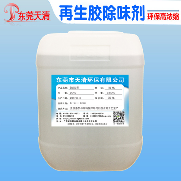 天清再生胶除味剂是一种不添加任何香精的除味剂,可广泛用于橡胶领域,有效去除难闻气味。提高产品的性价比。其原理是直接螯合低分子的混合物和渗入到橡胶高分子网状结构中,发生反应并迅速分解,其残余物溶于橡胶高分子网状结构中,吸附中和橡胶材料中的异味臭味。