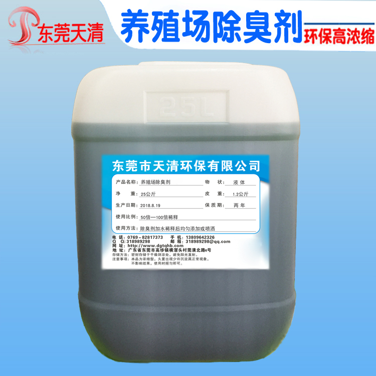 养殖除臭近几年逐渐受到了养殖户的重视,植物除臭剂正逐渐成为除臭剂中得新宠。天清植物养殖场除臭剂是采用植物提取技术,在多种植物的根、茎、叶和花果中提取有效成份,在高能射线作用下产生巨大的作用力,提高植物液活性,能与各种有害、异味分子迅速发生聚合、取代、置换、吸附等化学反应,产品中性,无毒、无可燃性、无腐蚀性、无二次污染,是有效去除废气、臭气、异味的环保产品。可以直接喷洒于畜禽舍或粪便上,或使用除臭喷雾设备进行稀释喷洒。 http://www.dgtqhb.com/