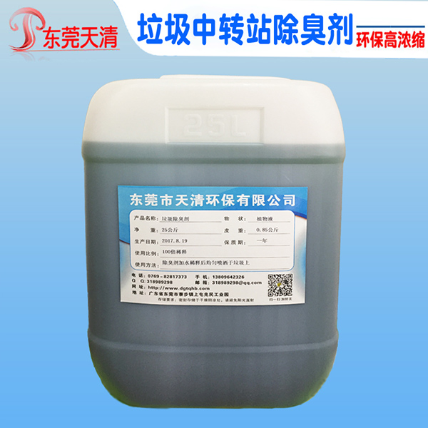 天清垃圾中转站除臭剂为高浓缩植物液,可稀释20-500倍使用,除臭快速彻底。性价比高,经济实用,对人体没有任何副作用。 垃圾中转站除臭剂配合垃圾除臭专用设备20-100倍稀释使用,以去除空气臭味和垃圾改性抑制臭味产生。http://www.dgtqhb.com/