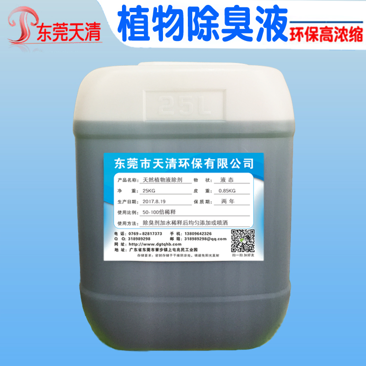 天清植物除臭液是采用植物提取技术,在多种植物的根、茎、叶和花果中提取有效成份,在高能射线作用下产生巨大的作用力,提高植物液活性,能与各种有害、异味分子迅速发生聚合、取代、置换、吸附等化学反应,产品中性,无毒、无可燃性、无腐蚀性、无二次污染,是有效去除废气、臭气、异味的环保产品。